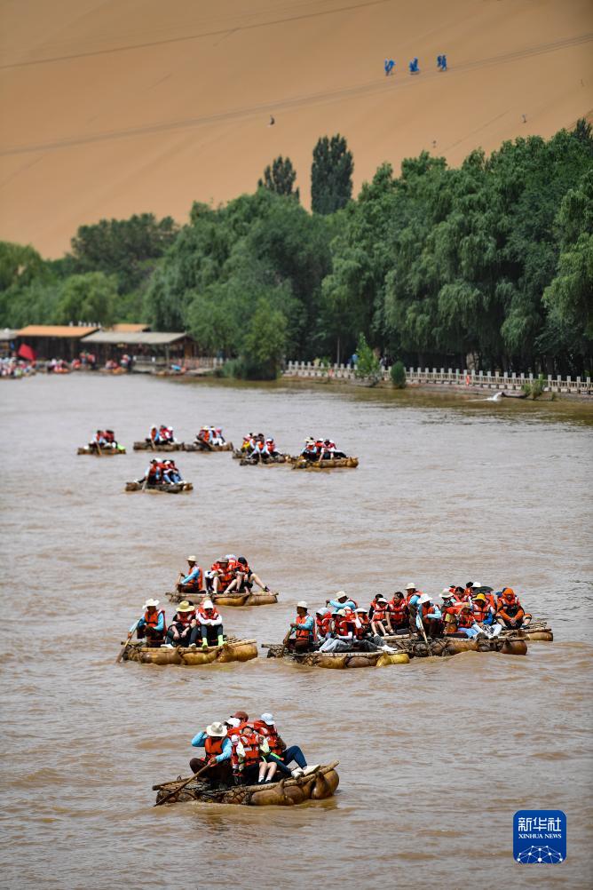 盛夏時(shí)節(jié),地處黃河之畔與騰格里沙漠邊緣的寧夏中衛(wèi)市沙坡頭景區(qū)迎來(lái)大批游客,人們?cè)谶@里體驗(yàn)羊皮筏子漂流、沙漠沖浪、滑沙、沙漠觀星等項(xiàng)目。據(jù)了解,進(jìn)入暑期,寧夏中衛(wèi)市沙坡頭景區(qū)客流量大幅增長(zhǎng),日客流量最高超過(guò)1萬(wàn)人次。