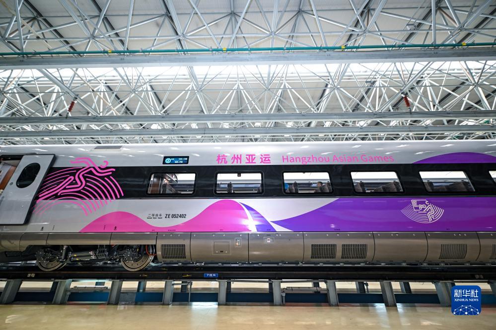 當(dāng)日,復(fù)興號(hào)亞運(yùn)智能動(dòng)車組在位于吉林長(zhǎng)春的中車長(zhǎng)春軌道客車股份有限公司正式下線。該列車為杭州第19屆亞運(yùn)會(huì)量身定制,由浙江交通集團(tuán)購置。