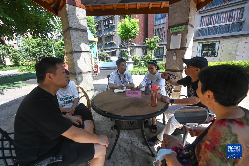 7月21日,在位于錦南街道水岸陽光小區的陽光議事廳,街道紀檢干部在聽取居民們反映的問題及意見。