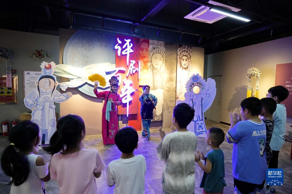 7月21日,在位于河北省灤州市的中國(guó)評(píng)劇藝術(shù)館,戲曲愛好者在為孩子們表演。