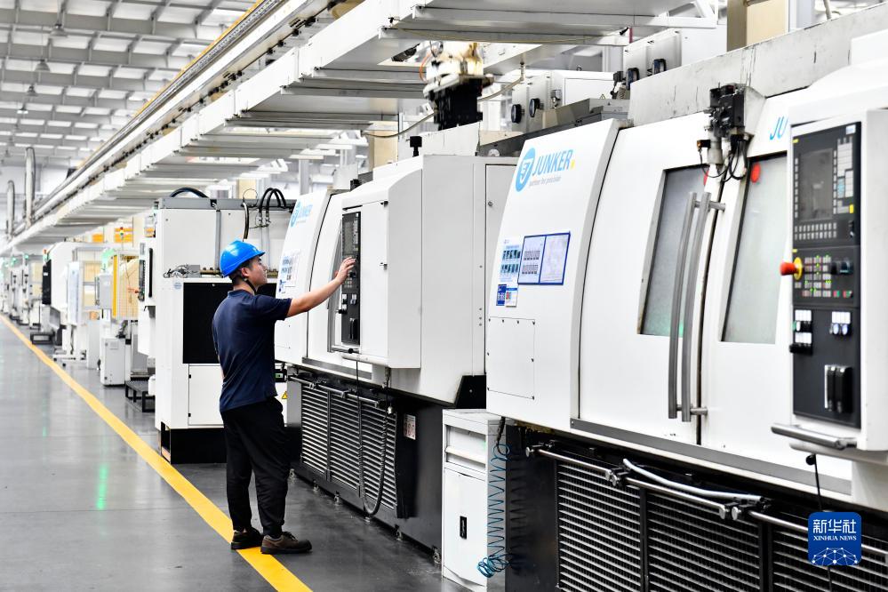 7月21日,在位于威海市文登區(qū)的天潤工業(yè)技術股份有限公司,工人在曲軸自動化生產(chǎn)線值守。
