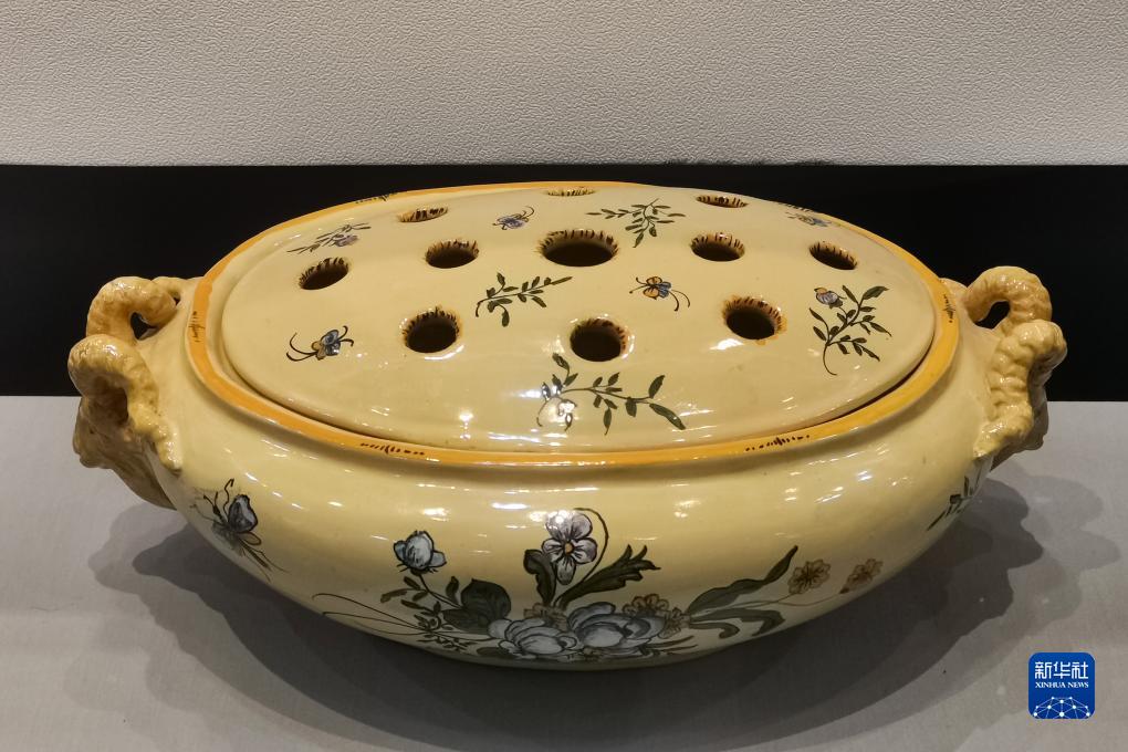 這是法國蒙彼利埃市贈送給成都市的彩繪陶罐(7月15日攝)。
