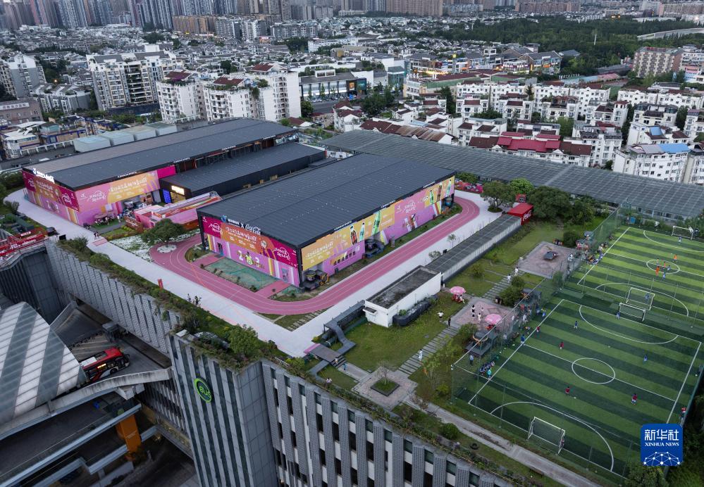 這是成都市金沙天空森林體育公園(7月20日攝)。金沙天空森林體育公園位于成都市金沙公交樞紐站停車場樓頂,占地12000平方米,有籃球館、排球館、綜合訓練館、體適能訓練區、足球場和健身步道等。