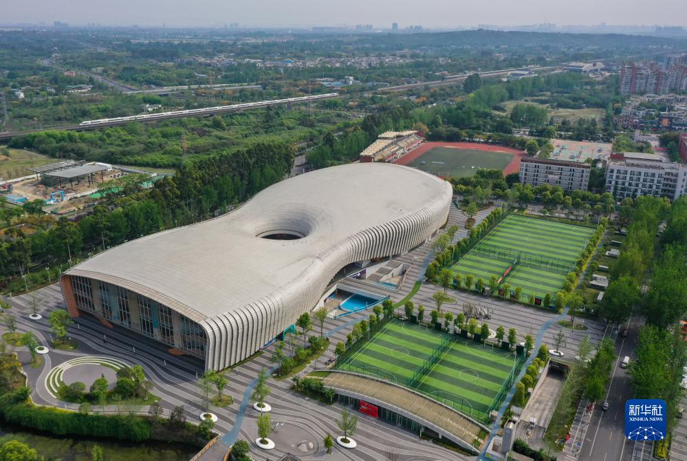 這是成都市新都區(qū)的香城體育中心(4月17日攝,無(wú)人機(jī)照片),這里將成為成都大運(yùn)會(huì)水球項(xiàng)目的比賽場(chǎng)地。