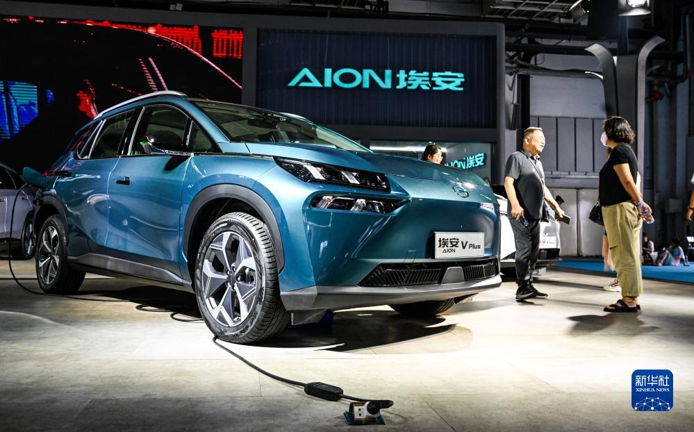 觀眾在長春汽博會廣汽埃安展位參觀咨詢(7月20日攝)。