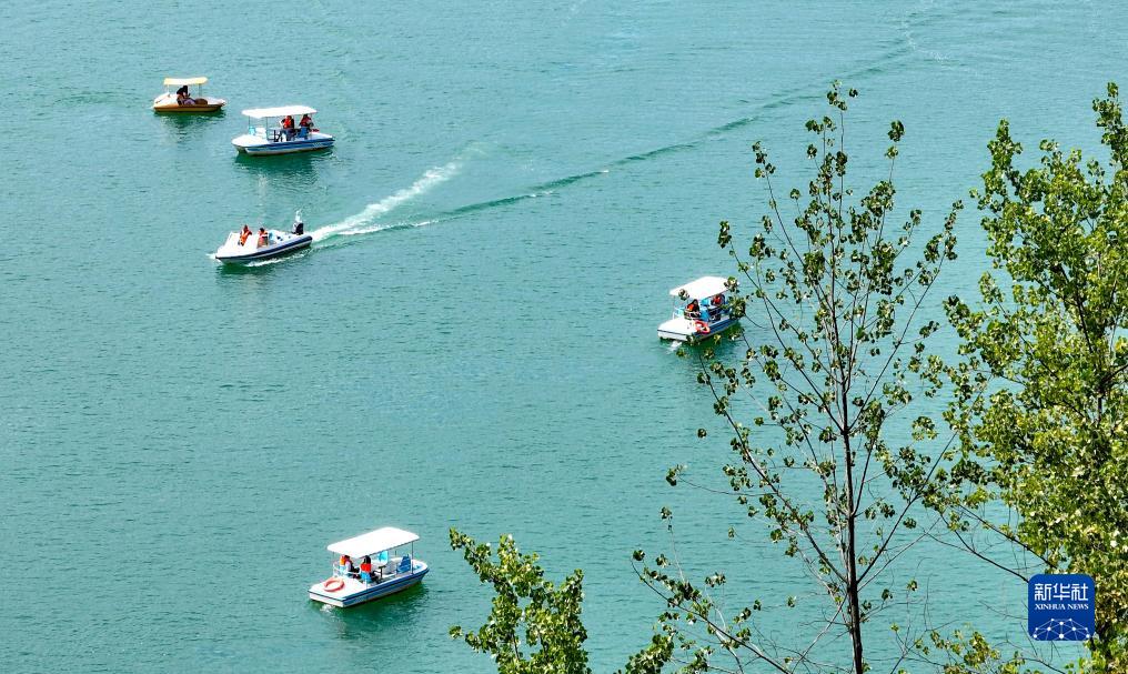7月21日,游客在貴州省銅仁市印江土家族苗族自治縣云上天池景區游覽(無人機照片)。