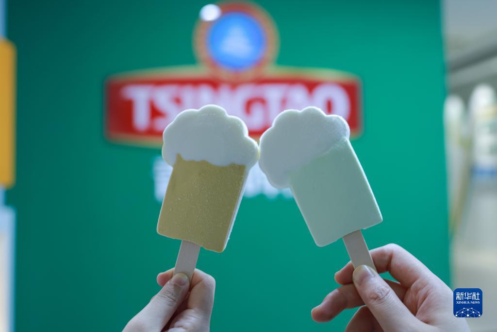 7月21日在山東省青島市李滄區第二啤酒廠純生之旅博物館拍攝的啤酒造型文創雪糕。