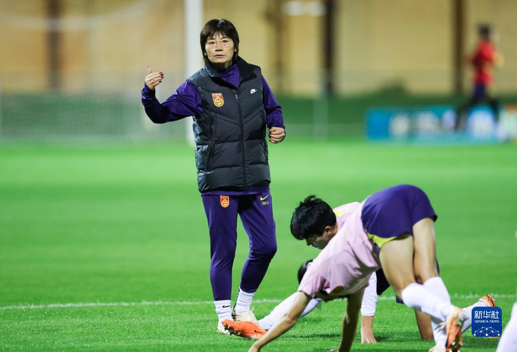 7月21日,中國女足主教練水慶霞在訓練場指導球員訓練。