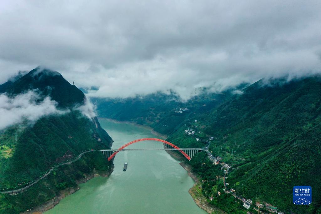 這是在重慶市巫山縣拍攝的雨后長江巫峽口景色(6月29日攝,無人機照片)。
