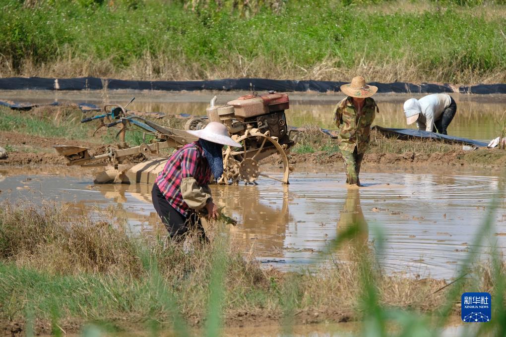 7月21日,農民在南寧市青秀區長塘鎮平整田地。