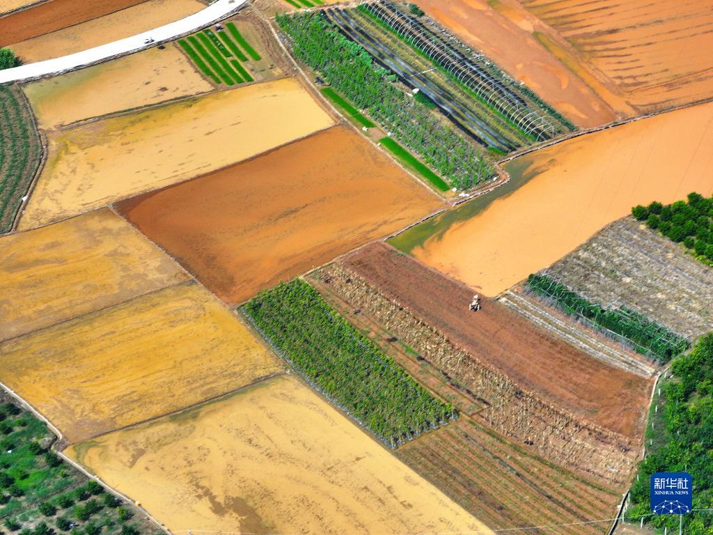 7月21日,農(nóng)民在南寧市青秀區(qū)長塘鎮(zhèn)耕田(無人機(jī)照片)。