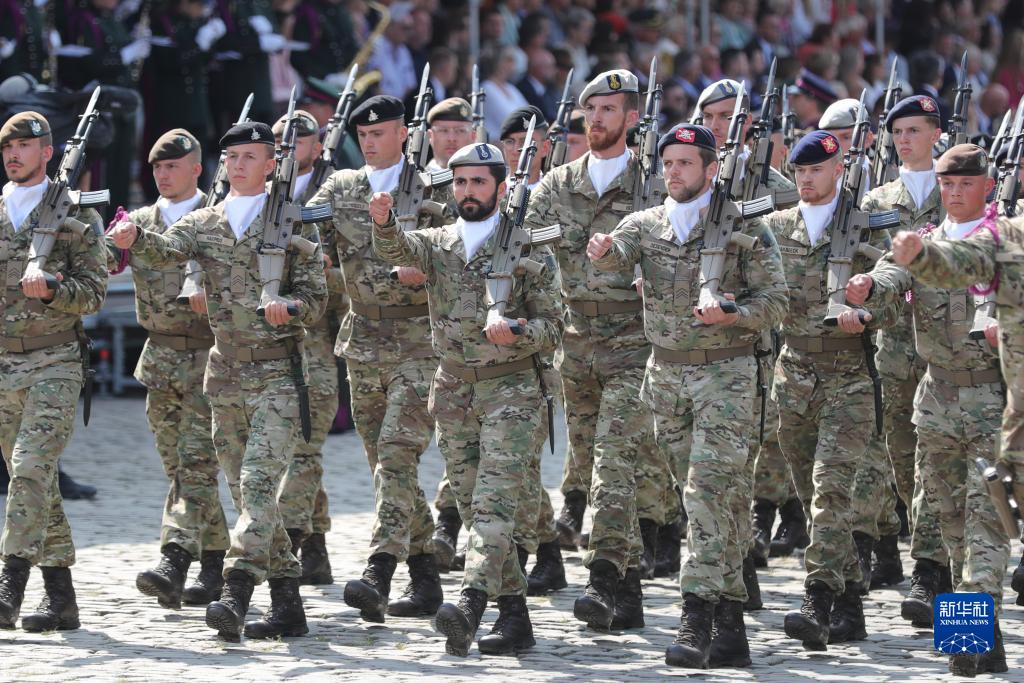 7月21日,軍人在比利時布魯塞爾參加國慶日閱兵式。