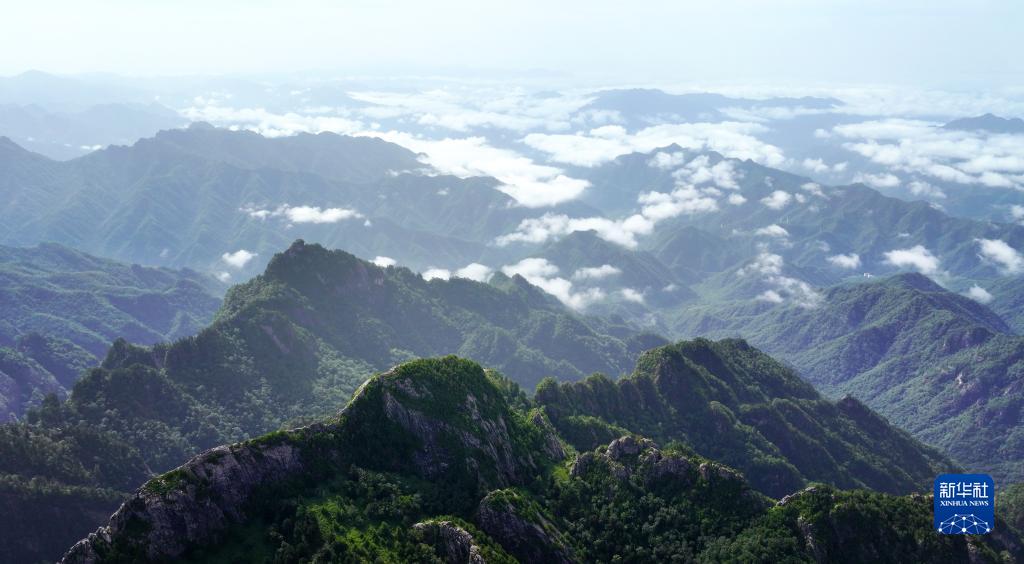 從陜西朱雀國家森林公園眺望秦嶺云海(7月21日攝,無人機照片)。