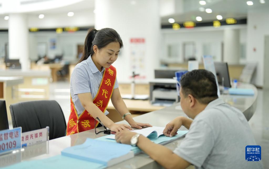 7月22日,河北省灤州市政務服務中心幫辦代辦員在為市民提供咨詢服務。