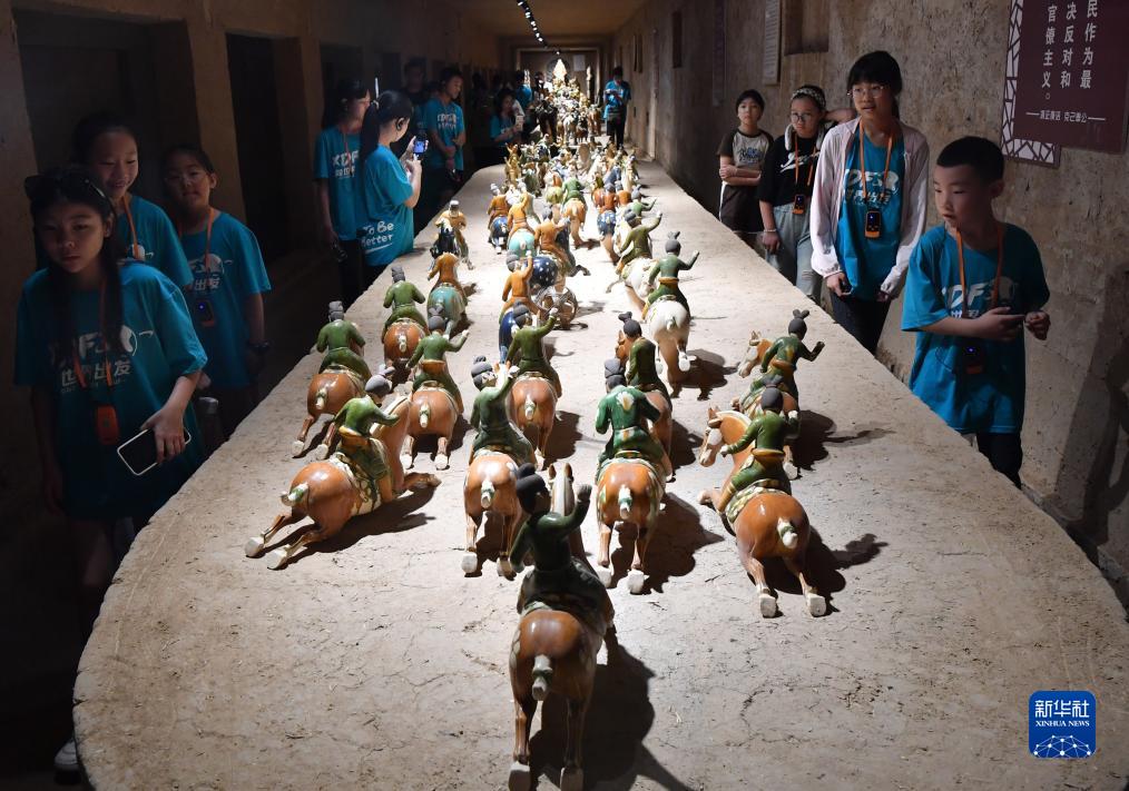 7月21日,參加研學活動的學生在南石山村的唐三彩文化園內參觀。