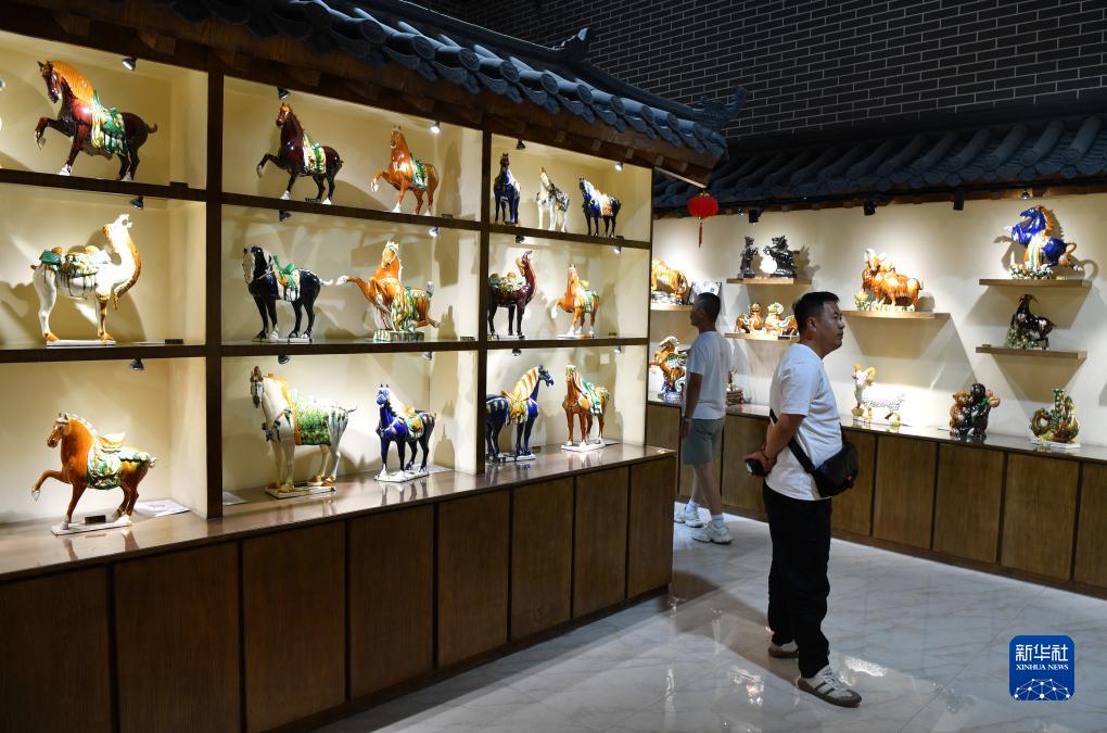 7月19日,顧客在南石山村一家唐三彩生產(chǎn)企業(yè)的展廳里參觀。