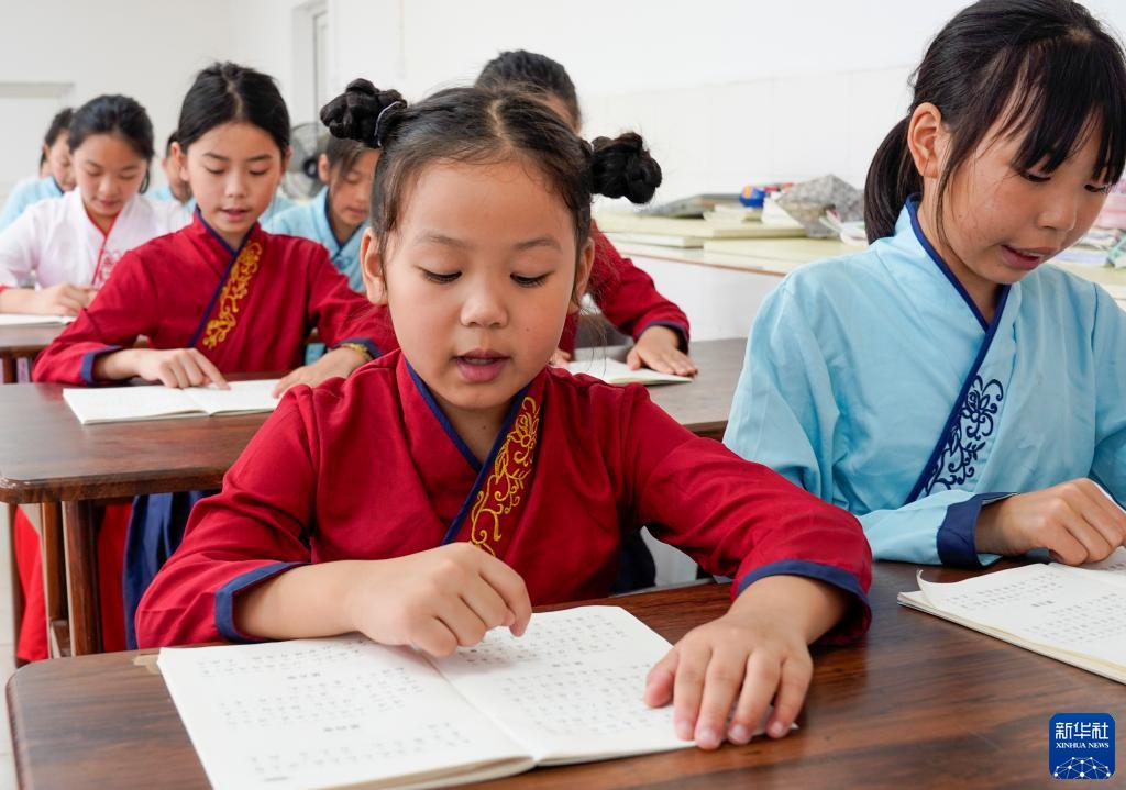 7月22日,萬州區恒合土家族鄉一個研學基地內,參加暑期避暑研學活動的學生在誦讀經典古詩詞。