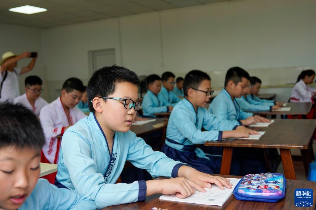 7月22日,萬州區恒合土家族鄉一個研學基地內,參加暑期避暑研學活動的學生在誦讀經典古詩詞。