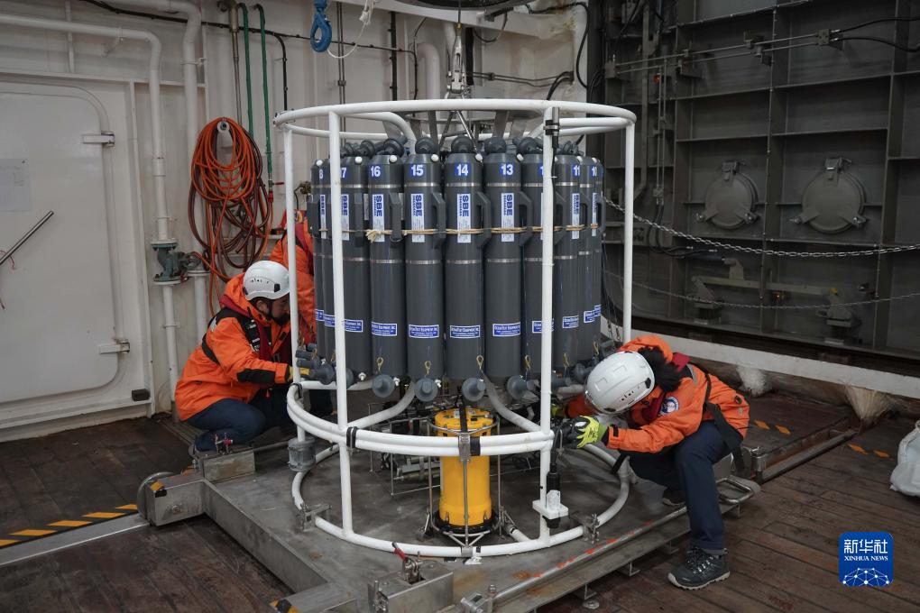 7月22日,中國(guó)第13次北冰洋科學(xué)考察隊(duì)進(jìn)行大洋作業(yè)演練,隊(duì)員在演練前檢查CTD(溫鹽深多參數(shù)海洋觀測(cè)系統(tǒng))。