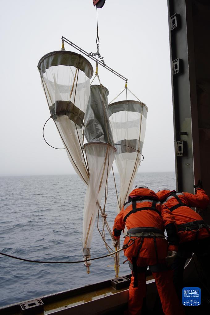 7月22日,中國第13次北冰洋科學考察隊進行大洋作業演練,隊員準備將浮游生物垂直拖網布放入海。