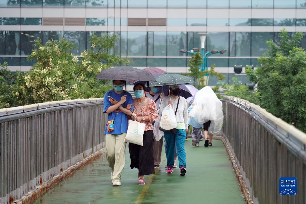 7月22日,市民走在北京市海淀區復興路附近的天橋上。