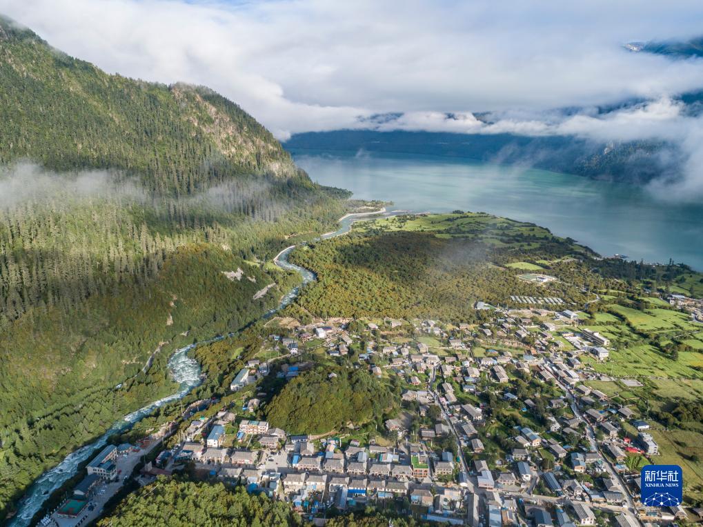這是7月20日拍攝的西藏林芝市工布江達(dá)縣錯(cuò)高鄉(xiāng)結(jié)巴村景色(無(wú)人機(jī)照片)。