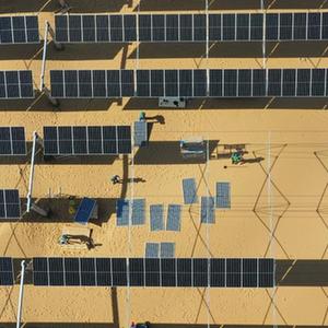 近日,位于內蒙古杭錦旗庫布其沙漠億利生態示范區的蒙西基地庫布其200萬千瓦光伏治沙項目進入光伏板安裝環節。據了解,該項目總投資111.5億元,包括200萬千瓦光伏場區、10萬畝沙漠治理生態建設工程等。項目預計2024年底前實現全容量并網發電,建成后年平均可供應綠色電力約40億千瓦時。