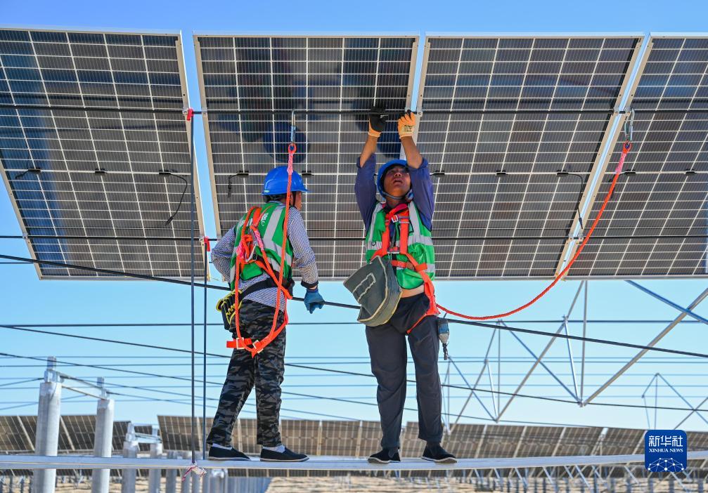 近日,位于內蒙古杭錦旗庫布其沙漠億利生態示范區的蒙西基地庫布其200萬千瓦光伏治沙項目進入光伏板安裝環節。據了解,該項目總投資111.5億元,包括200萬千瓦光伏場區、10萬畝沙漠治理生態建設工程等。項目預計2024年底前實現全容量并網發電,建成后年平均可供應綠色電力約40億千瓦時。
