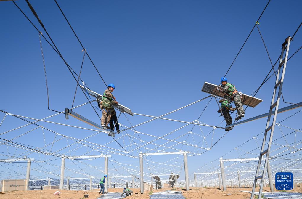 近日,位于內蒙古杭錦旗庫布其沙漠億利生態示范區的蒙西基地庫布其200萬千瓦光伏治沙項目進入光伏板安裝環節。據了解,該項目總投資111.5億元,包括200萬千瓦光伏場區、10萬畝沙漠治理生態建設工程等。項目預計2024年底前實現全容量并網發電,建成后年平均可供應綠色電力約40億千瓦時。