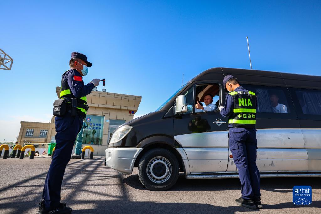 7月21日,霍爾果斯出入境邊防檢查站執勤民警在對入境車輛進行查驗。