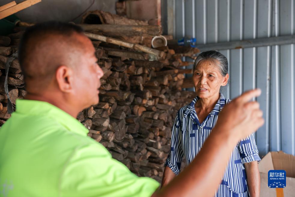 7月20日,在云南省普洱市江城縣,刁發(fā)興(左)向村民通報(bào)象群活動(dòng)信息。
