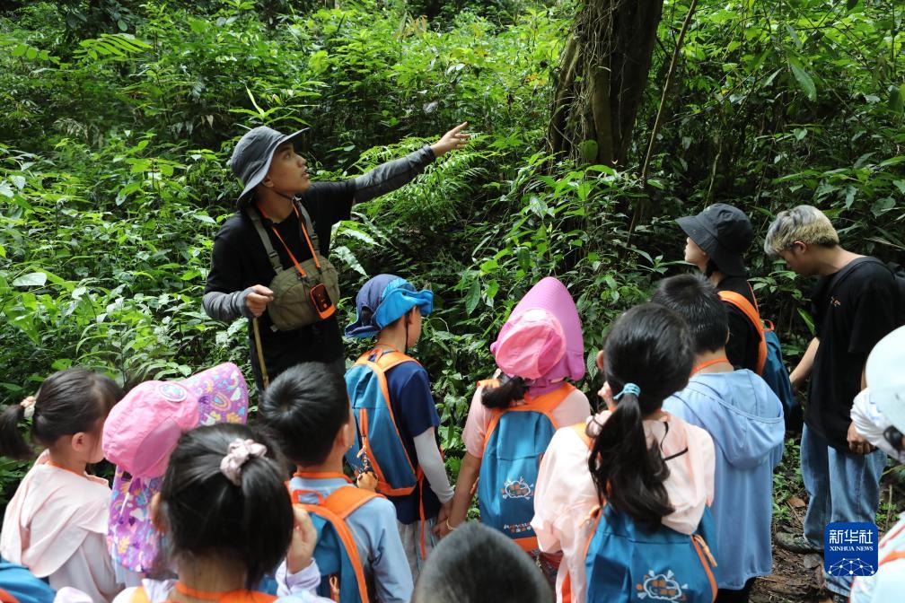 7月22日,來自京滬兩地的學生和家長在云南西雙版納的雨林中聽科普導游介紹雨林生態(tài)常識。