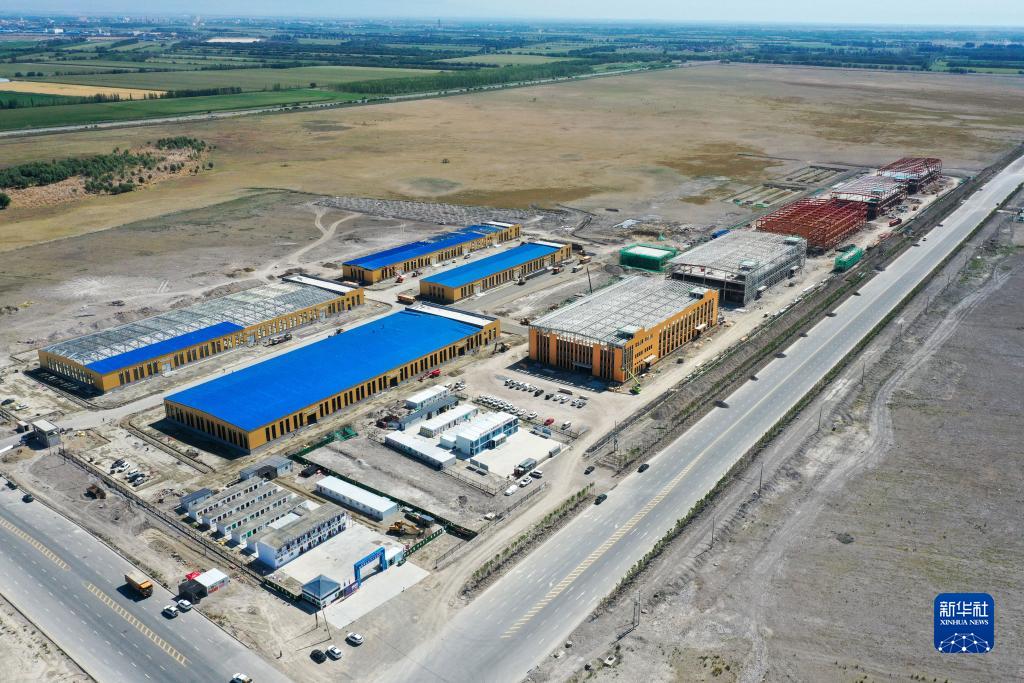 這是7月22日在新疆塔城重點(diǎn)開(kāi)發(fā)開(kāi)放試驗(yàn)區(qū)先行發(fā)展區(qū)拍攝的正在建設(shè)的閩商智能電子產(chǎn)業(yè)園(無(wú)人機(jī)照片)。