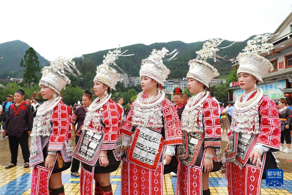 7月23日,盛裝參與貴州劍河仰阿莎文化節活動的苗族群眾。