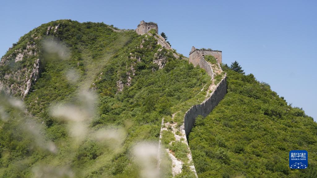夏日里,河北省遷安市境內的白羊峪長城沿線樹木蔥郁,盤踞在山巔的古長城在藍天白云的映襯下愈發壯美。