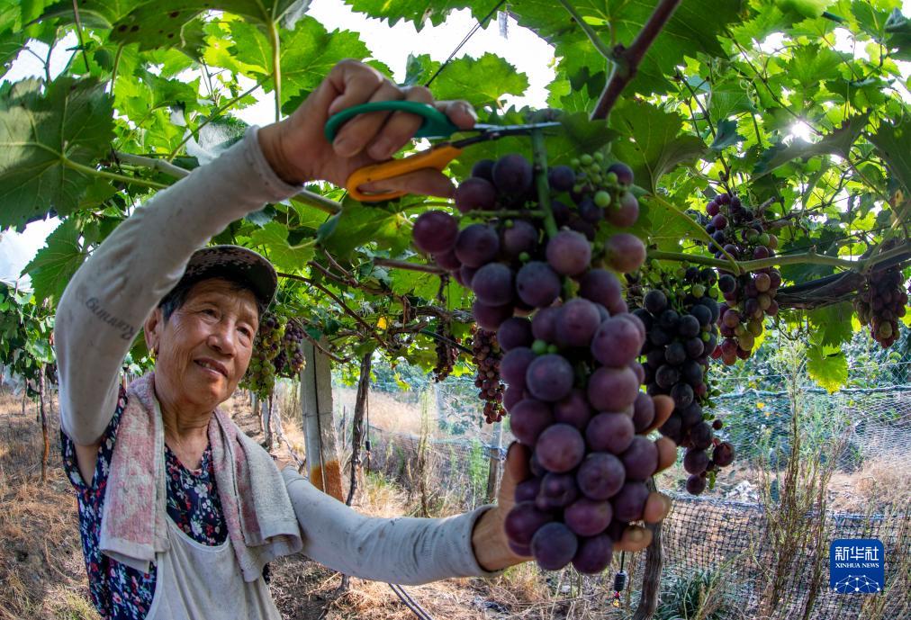 7月23日,果農在江蘇省泰州市姜堰區顧高鎮塘橋村天地農業園采摘葡萄。