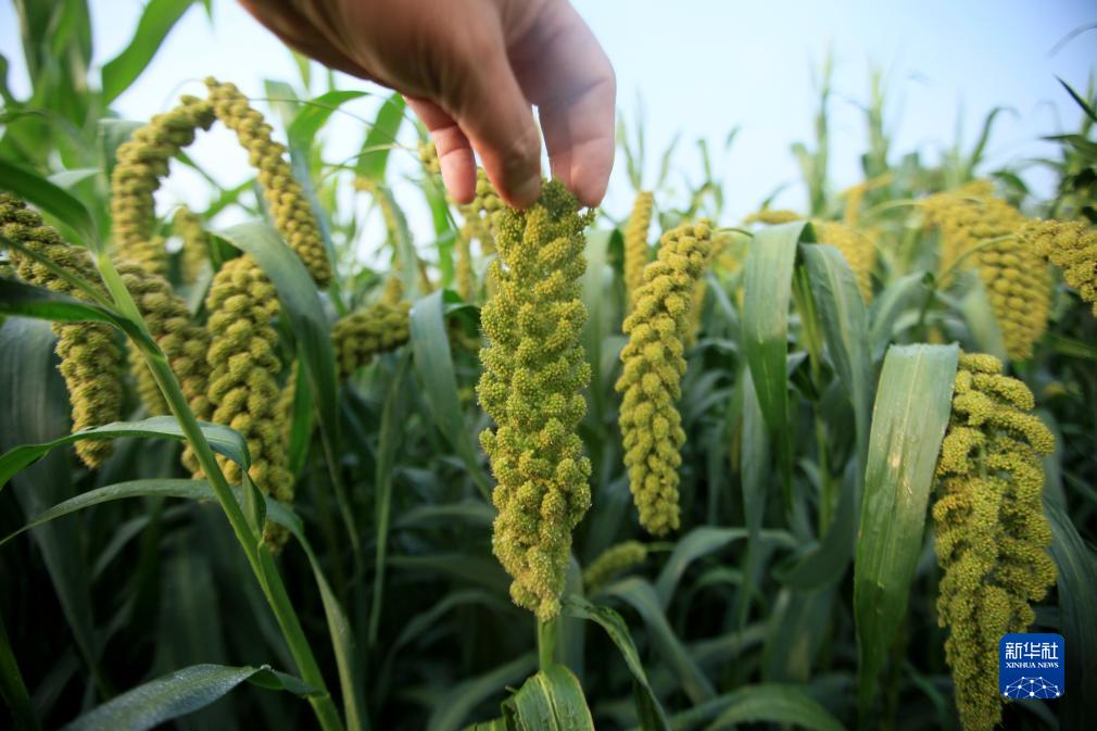 7月23日,山東省臨沂市平邑縣地方鎮(zhèn)西瑤草村村民在查看谷子長勢。