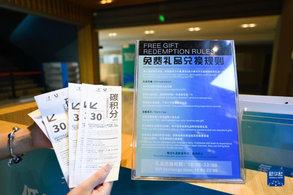 7月16日,在大運村藝術(shù)中心內(nèi),工作人員展示“低碳魔方”兌換的“碳積分”小票。