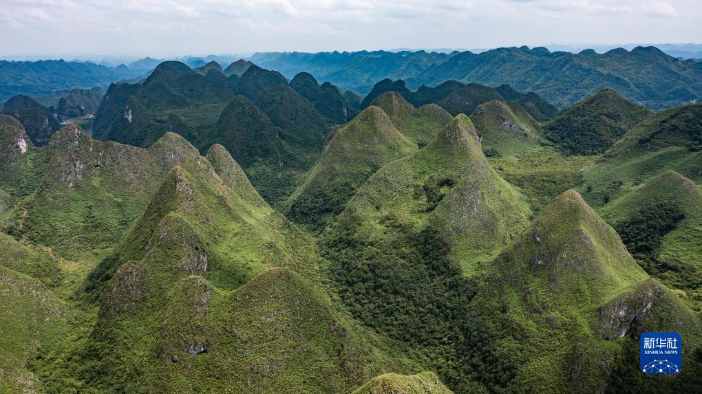 夏日,位于貴州省六盤水市六枝特區新窯鎮的播雨峰林綠意盎然,千姿百態的峰林景觀構成一幅美麗的生態畫卷。