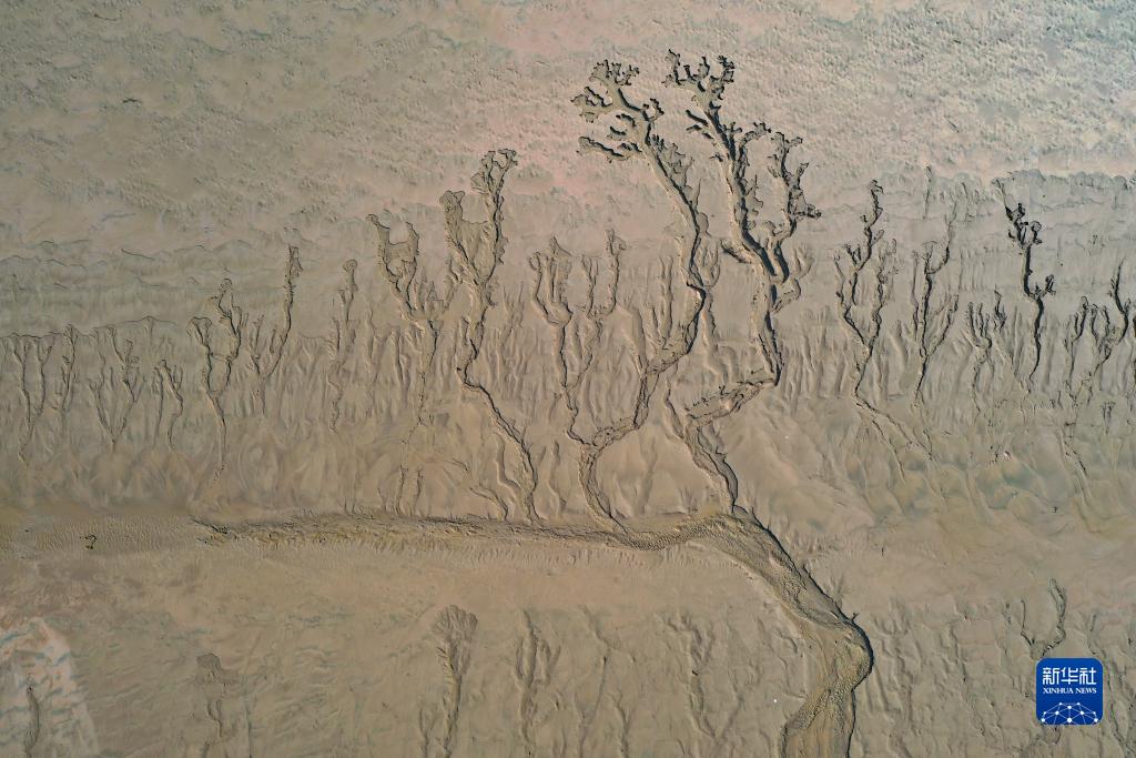 近日,隨著黃河調水調沙結束,黃河河南省開封市黑崗口險工段水位下降。河床被水流沖刷過后呈現出縱橫交錯的“脈絡”。