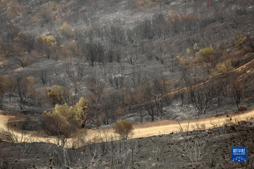 這是7月24日在阿爾及利亞布維拉省拍攝的野火燒過的山坡。