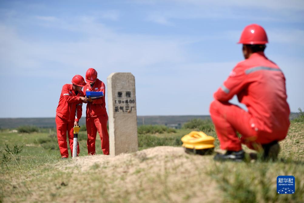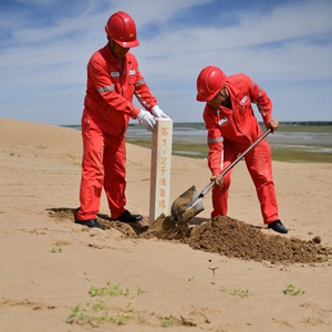 在內蒙古自治區鄂爾多斯市烏審旗毛烏素沙地深處,一群身著紅色工服的天然氣管線巡線員,每日徒步穿行在沙漠、戈壁、草原間。