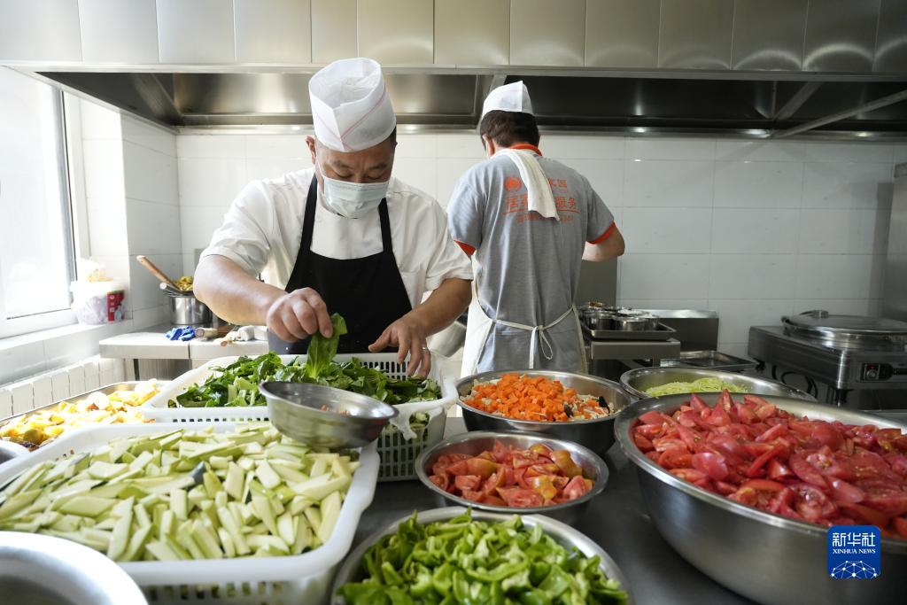 7月25日,工作人員在河北省唐山市路北區煤研分院社區養老服務中心備餐。