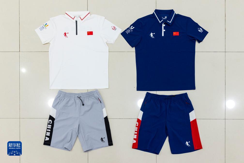 這是7月24日拍攝的第31屆世界大學(xué)生夏季運(yùn)動會中國代表團(tuán)成員配發(fā)裝備中的POLO短袖T恤衫和梭織五分褲。