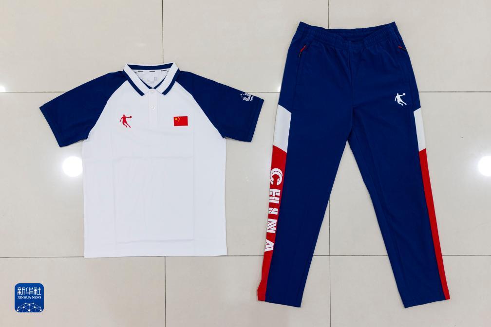 這是7月24日拍攝的第31屆世界大學(xué)生夏季運動會中國代表團成員配發(fā)裝備中的POLO短T恤衫和長褲。