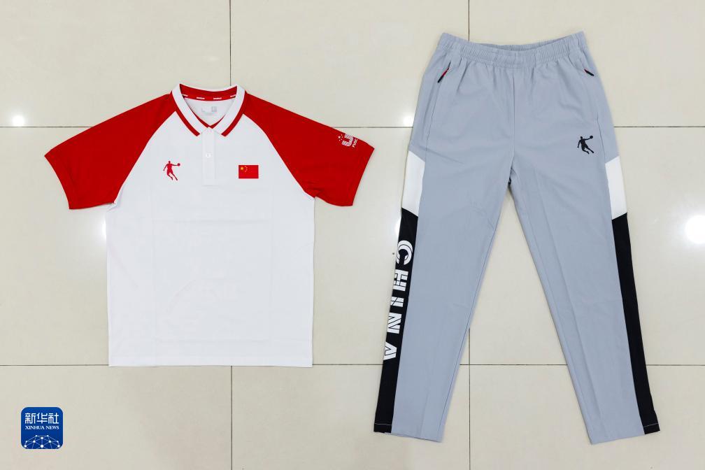 這是7月24日拍攝的第31屆世界大學(xué)生夏季運(yùn)動(dòng)會(huì)中國(guó)代表團(tuán)成員配發(fā)裝備中的POLO短T恤衫和長(zhǎng)褲。
