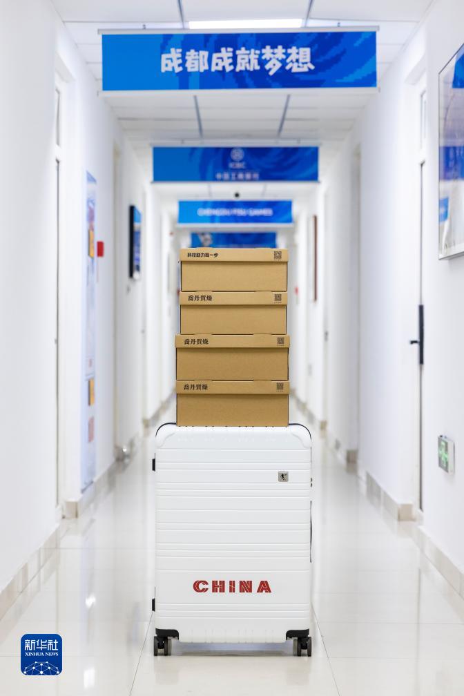 這是7月24日在第31屆世界大學生夏季運動會大運村中國代表團駐地拍攝的代表團成員配發裝備。