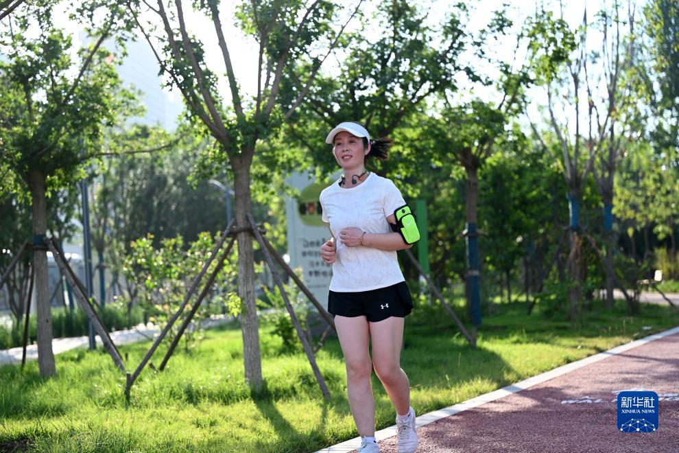 7月25日,市民在白溝新城一處“口袋公園”跑步。