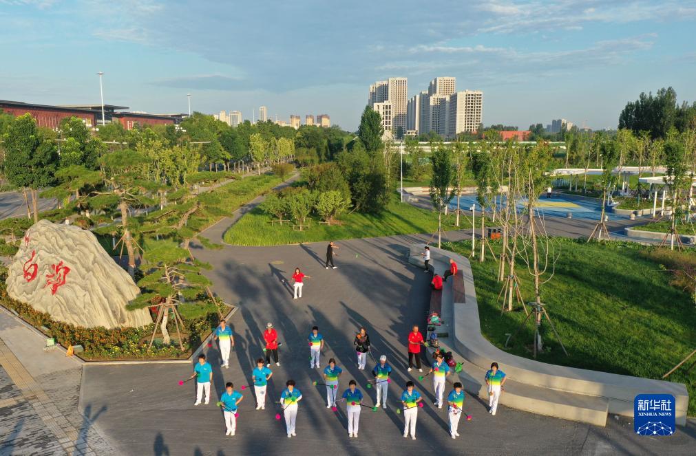 7月25日,市民在白溝新城一處“口袋公園”健身(無人機(jī)照片)。