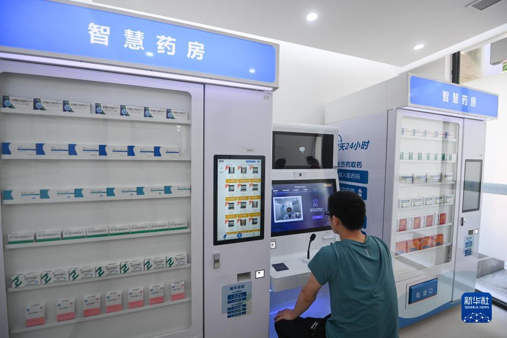 7月25日,居民在諸暨市浣東街道東盛社區衛生服務站的智慧藥房內進行遠程問診,問診完畢后可以開具處方并配好日常用藥。